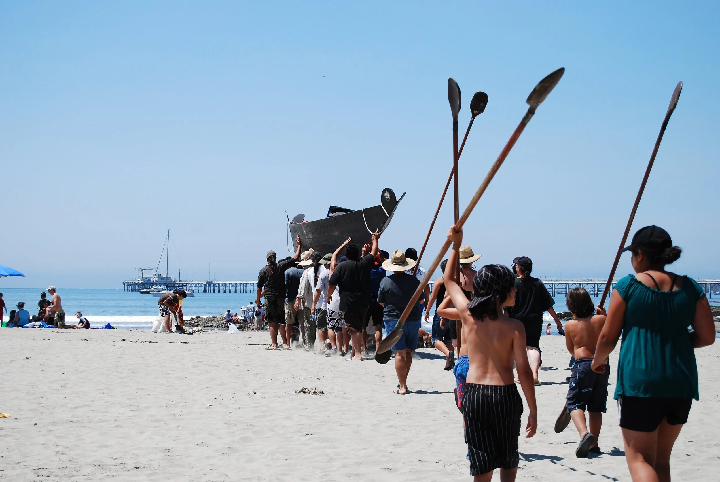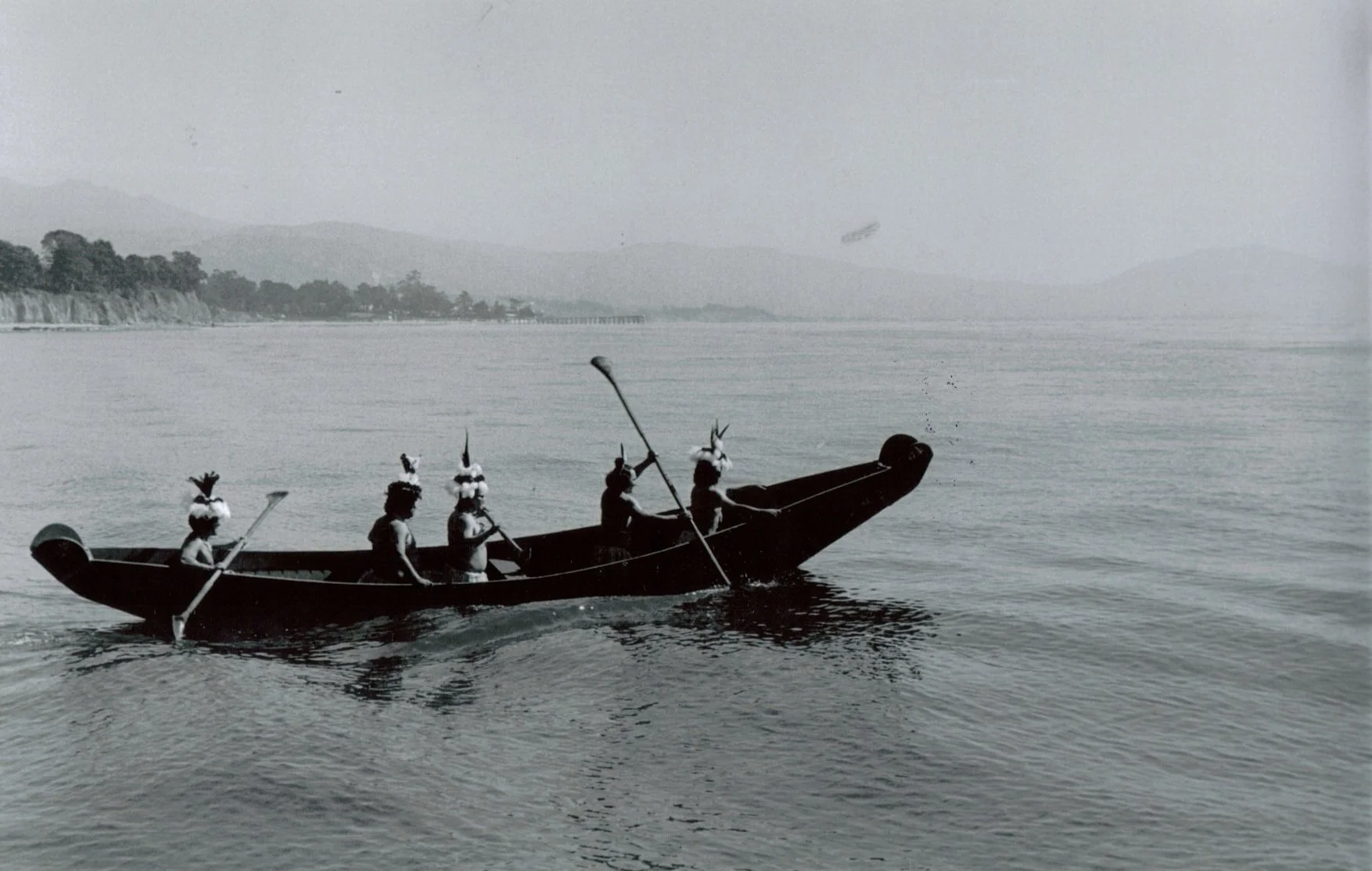 Building and paddling a tomol wasn’t just a skill—those who mastered it belonged to an elite guild called the Brotherhood-of-the-Tomol. They were respected, wealthy, and vital to our community’s survival. But Spanish colonization disrupted our lifeways, took our lands and waterways, banned our language, and tried to erase our traditions. A few Brotherhood members held on—like Palatino Saqt’ele, who continued under the control of the Spanish Missions—but over time, poverty and tragedy took their toll. By the early 1800s, the Brotherhood was nearly gone. So were the tomols.
