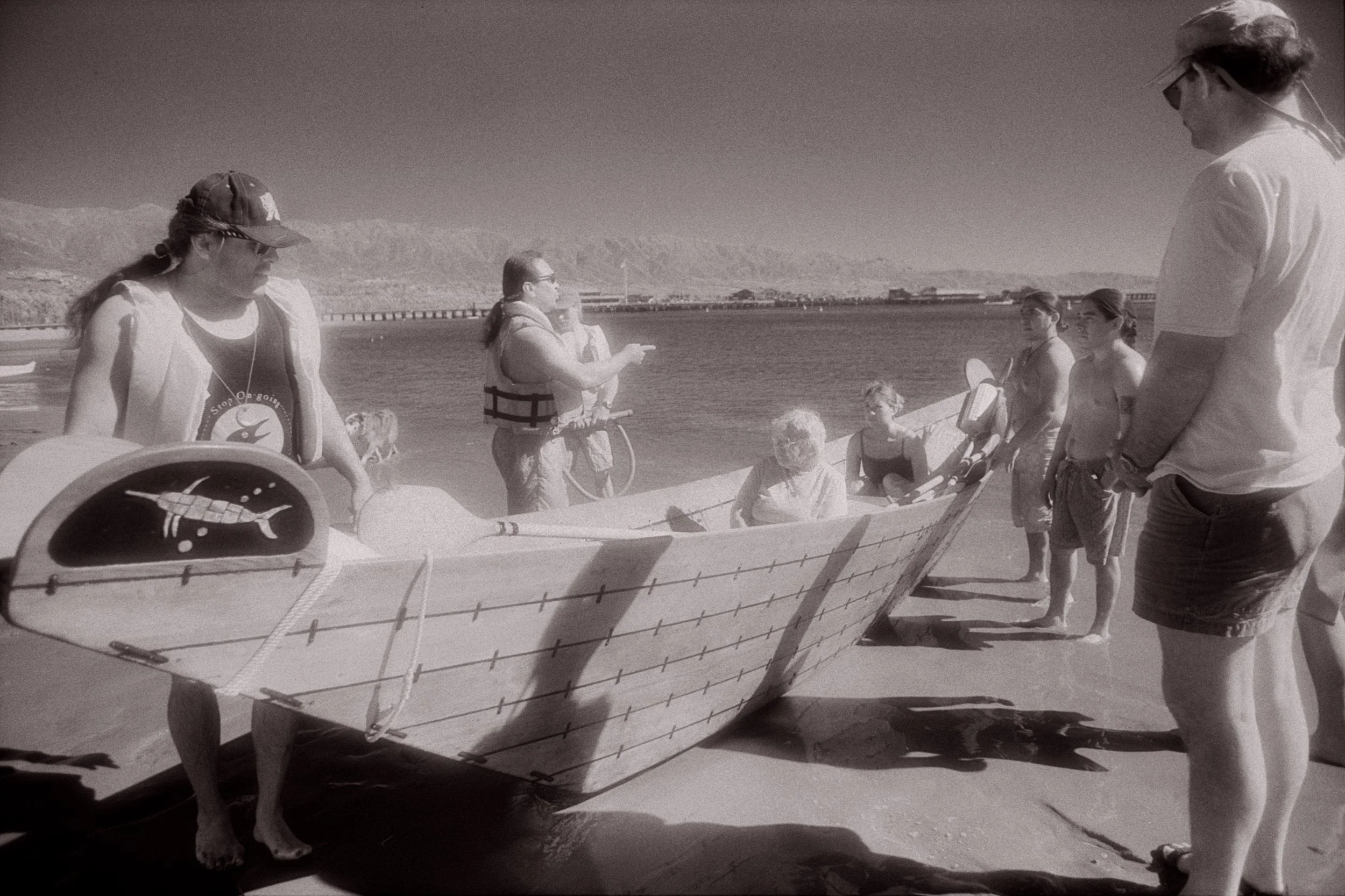 With many hands to help build her, ’Elye’wun (swordfish) was born nine months later and her first launch was from Santa Barbara harbor on Thanksgiving Day 1997. As paddlers gently lifted the frail bodies of Chumash elders, Gramma Liz and Gramma Stella, into the ’Eley’wun, huge smiles broke out. “I would have gone to that launch if I had to crawl there!” - Gramma Liz Easter