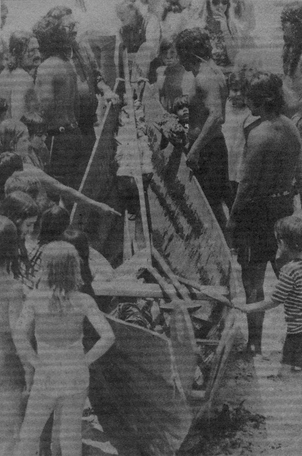May 1976: Our Chumash community has it's first launch from East Beach in Santa Barbara to Summerland. Photo: Ernie Brooks